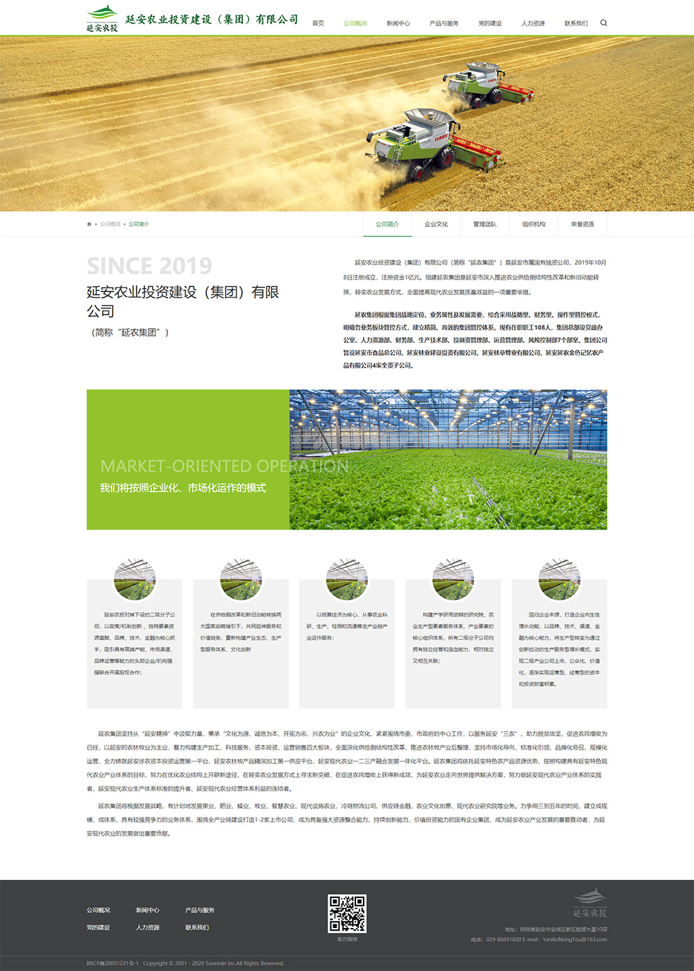 延安農業(yè)投資建設(集團)有限公司(簡(jiǎn)稱(chēng)“延農集團”)是延安市屬?lài)歇氋Y公司,2019年10月8日注冊成立,注冊資金1億元。組建延農集團是延安市深入推進(jìn)農業(yè)供給側結構性改革和新舊動(dòng)能轉換,轉變農業(yè)發(fā)展方式,全面提高現代農業(yè)發(fā)展質(zhì)量效益的一項重要舉措。