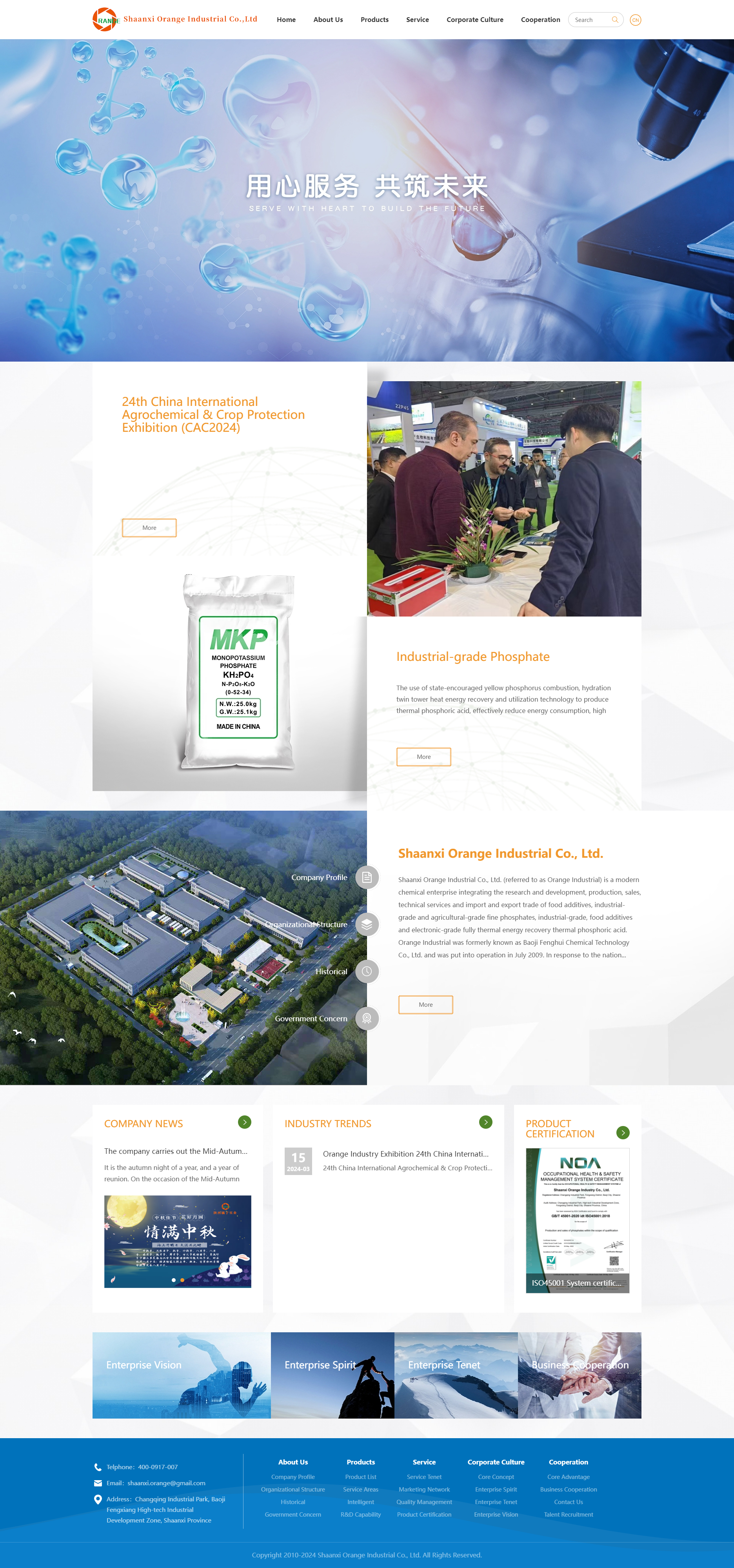 陜西橘子實(shí)業(yè)有限公司(簡(jiǎn)稱(chēng)橘子實(shí)業(yè))是集食品添加劑、工業(yè)級、農業(yè)級精細磷酸鹽,工業(yè)級、食品添加劑、電子級全熱能回收熱法磷酸的研發(fā)、生產(chǎn)、銷(xiāo)售、技術(shù)服務(wù)和進(jìn)出口貿易為一體的現代化工企業(yè)。橘子實(shí)業(yè)前身為寶雞豐匯化工科技有限公司,于2009年7月建成投產(chǎn)。為響應國家工業(yè)企業(yè)“退城入園”轉型升級號召,2019年9月,公司正式改制組建橘子實(shí)業(yè)、落戶(hù)陜西省寶雞市鳳翔區長(cháng)青工業(yè)園區。橘子實(shí)業(yè)開(kāi)啟從生產(chǎn)制造型企業(yè)向制造服務(wù)型企業(yè)轉型,采用目前國內先進(jìn)的全自動(dòng)化生產(chǎn)設備,配套標準化生產(chǎn)車(chē)間及先進(jìn)的管理理念,從單一傳統產(chǎn)業(yè)向無(wú)機鹽化工綜合領(lǐng)域邁進(jìn)。