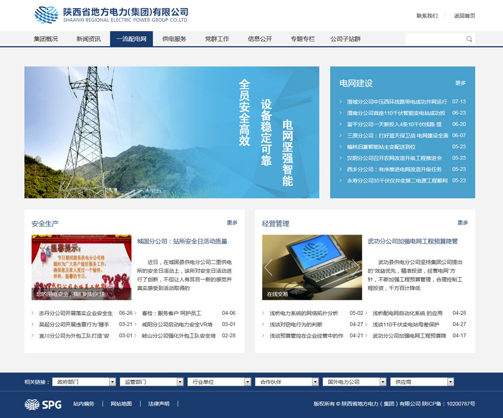 由硅峰網(wǎng)絡(luò )為陜西省地方電力集團提供的門(mén)戶(hù)網(wǎng)站站群管理系統(1個(gè)集團主站,19個(gè)下屬公司子站,4套專(zhuān)題模板),實(shí)現了多站點(diǎn)發(fā)布信息,集中審核管理,多樣化的專(zhuān)題設計及自主模板選擇管理,采用前后端的完全分離、內外網(wǎng)服務(wù)器隔離部署,提高數據的安全性。