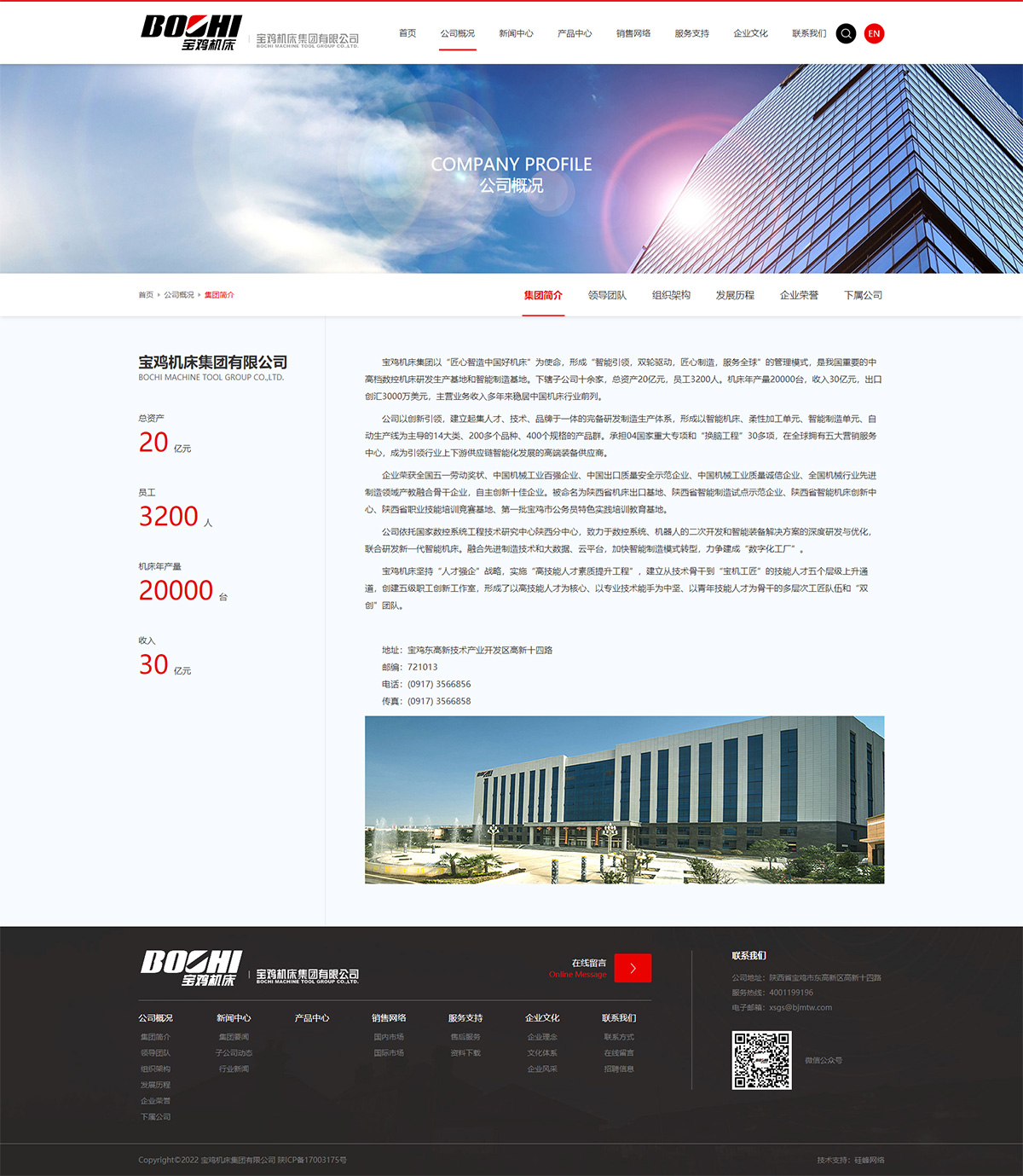 寶雞機床集團以“匠心智造中國好機床”為使命,形成“智能引領(lǐng),雙輪驅動(dòng),匠心制造,服務(wù)全球”的管理模式,是我國重要的中高檔數控機床研發(fā)生產(chǎn)基地和智能制造基地。下轄子公司十余家,總資產(chǎn)20億元,員工3200人。機床年產(chǎn)量20000臺,收入30億元,出口創(chuàng )匯3000萬(wàn)美元,主營(yíng)業(yè)務(wù)收入多年來(lái)穩居中國機床行業(yè)前列。