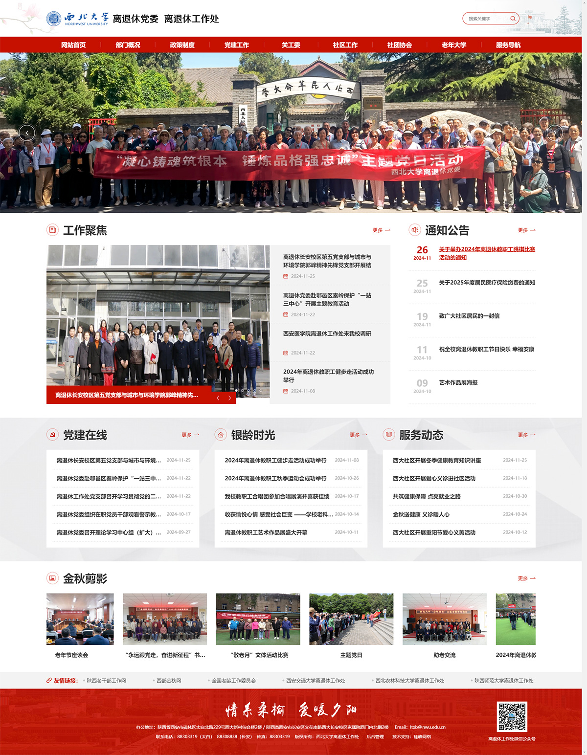 西北大學(xué)(Northwest University),由陜西省人民政府主管,入選中西部高?;A能力建設工程,為教育部與陜西省人民政府共建綜合性全國重點(diǎn)大學(xué) ,是國家“雙一流”建設高校、國家“211工程”建設院校?!竟璺寰W(wǎng)絡(luò )】于2023年開(kāi)始陸續為貴校黨群系統、行政部門(mén)、院系、科研機構、業(yè)務(wù)&服務(wù)單位提供網(wǎng)站制作與技術(shù)維護工作,先后合作的單位有:財務(wù)處、研究生院、數學(xué)學(xué)院、外國語(yǔ)學(xué)院、離退處、科學(xué)史高等研究院、中亞人類(lèi)與環(huán)境一帶一路聯(lián)合實(shí)驗室、中國動(dòng)物靈長(cháng)類(lèi)學(xué)分會(huì )......