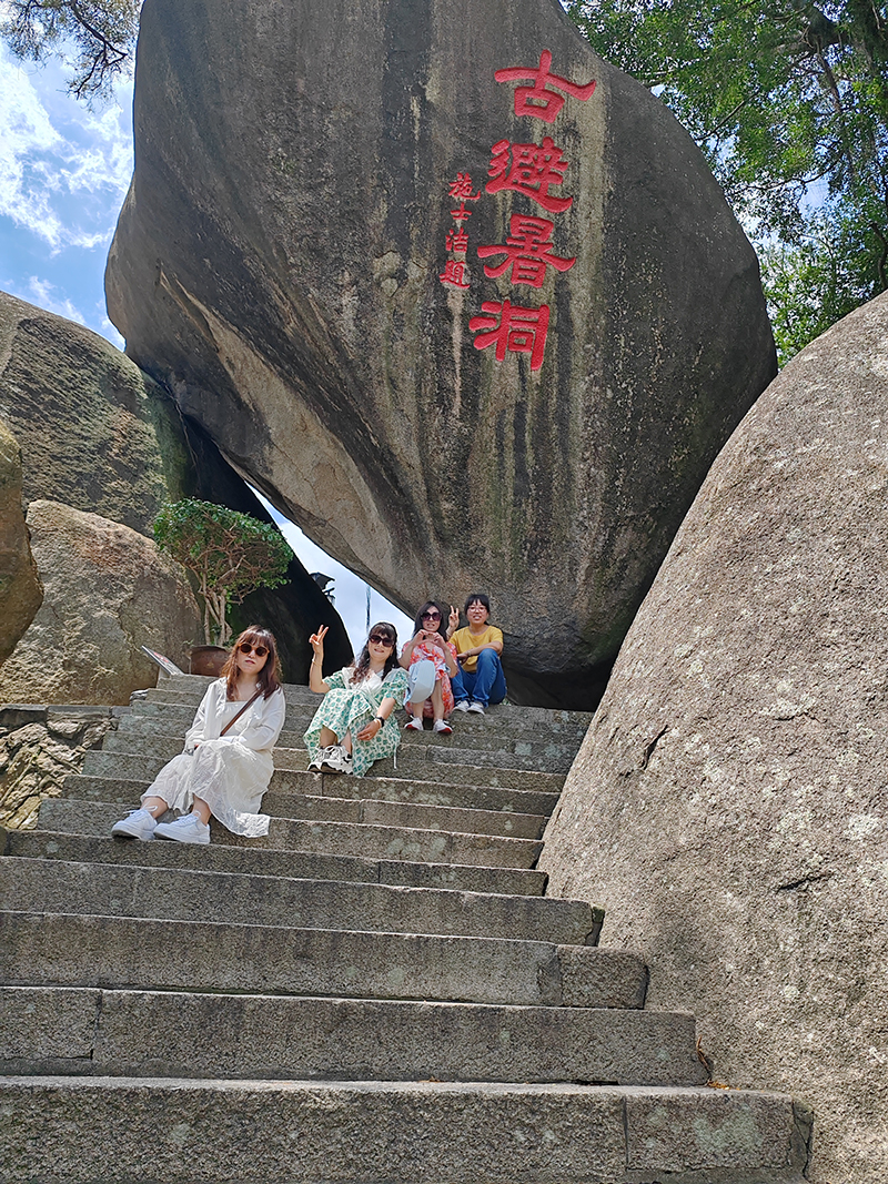 午后,挑戰攀登日光巖。雖然臺階陡峭,但大家互相鼓勵,最終全員成功登頂。
